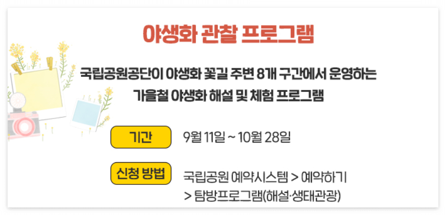 국립공원공단이 야생화 꽃길 주변 8개 구간에서 운영하는 가을철 야생화 해설 및 체험 프로그램