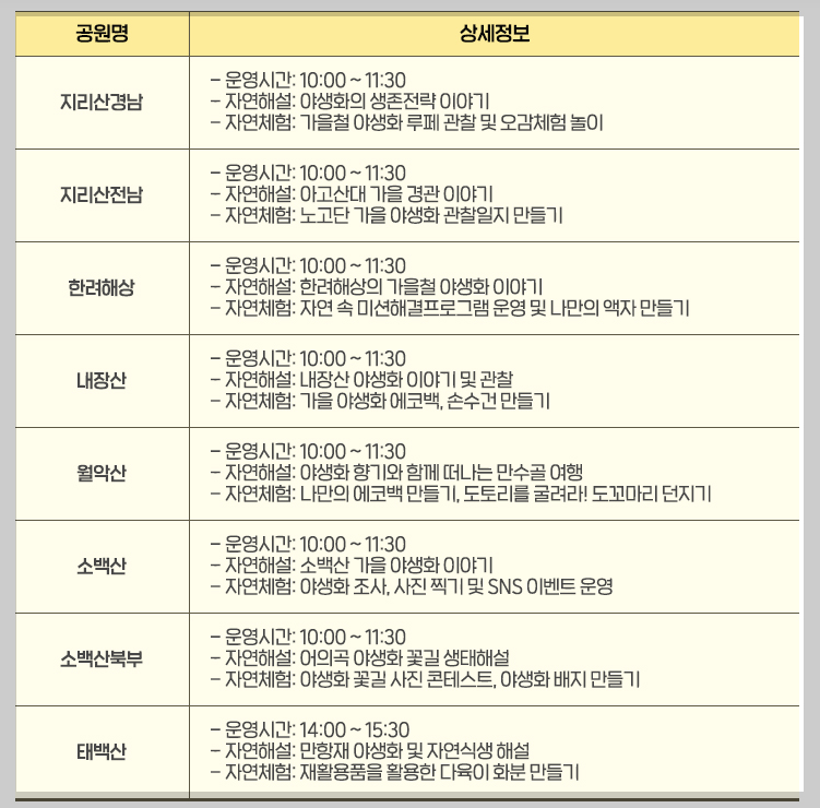 ※ 국립공원별 상세 일정은 국립공원공단 누리집 공지사항에서 확인하세요~