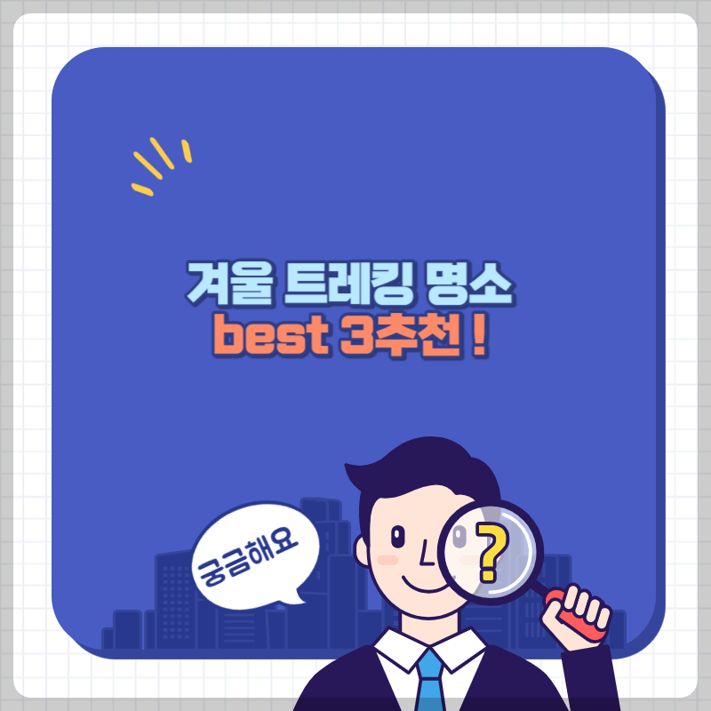 추운 겨울이지만 겨울 트레킹을 좋아하시는 분들이 참으로 많습니다. 하얀 눈이 덮인 겨울산을 오르는 그 기분은 경험해 보신 분이라면 결코 잊을 수 없는 기억이실 겁니다. 겨울 트레킹 하기 좋은 트레킹 명소 best3 알려드립니다!