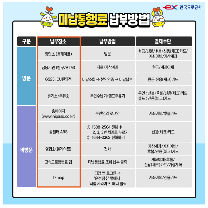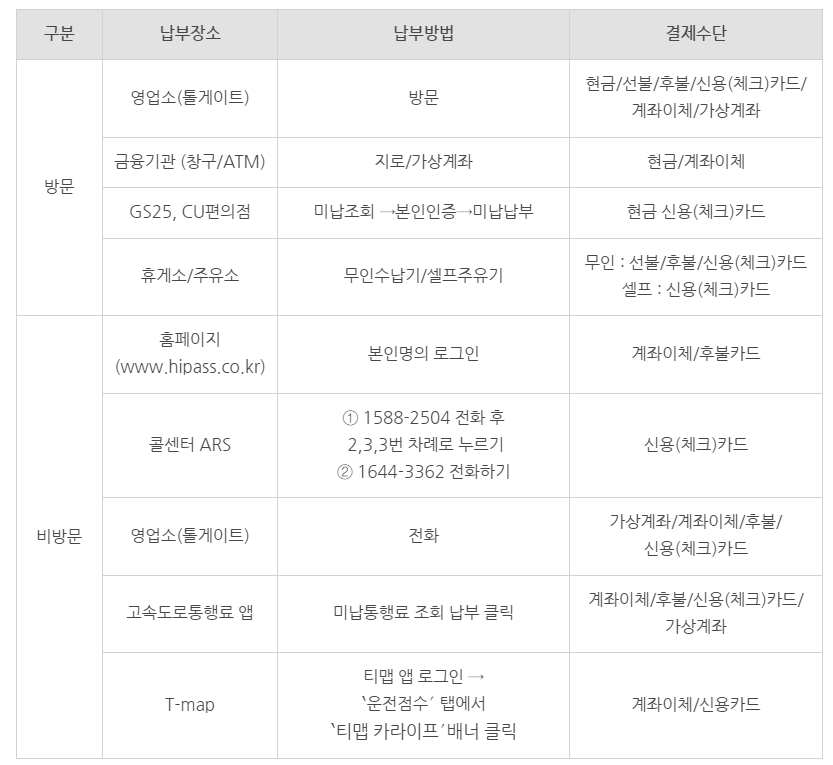 1. 고속도로 미납 통행료 납부 방법