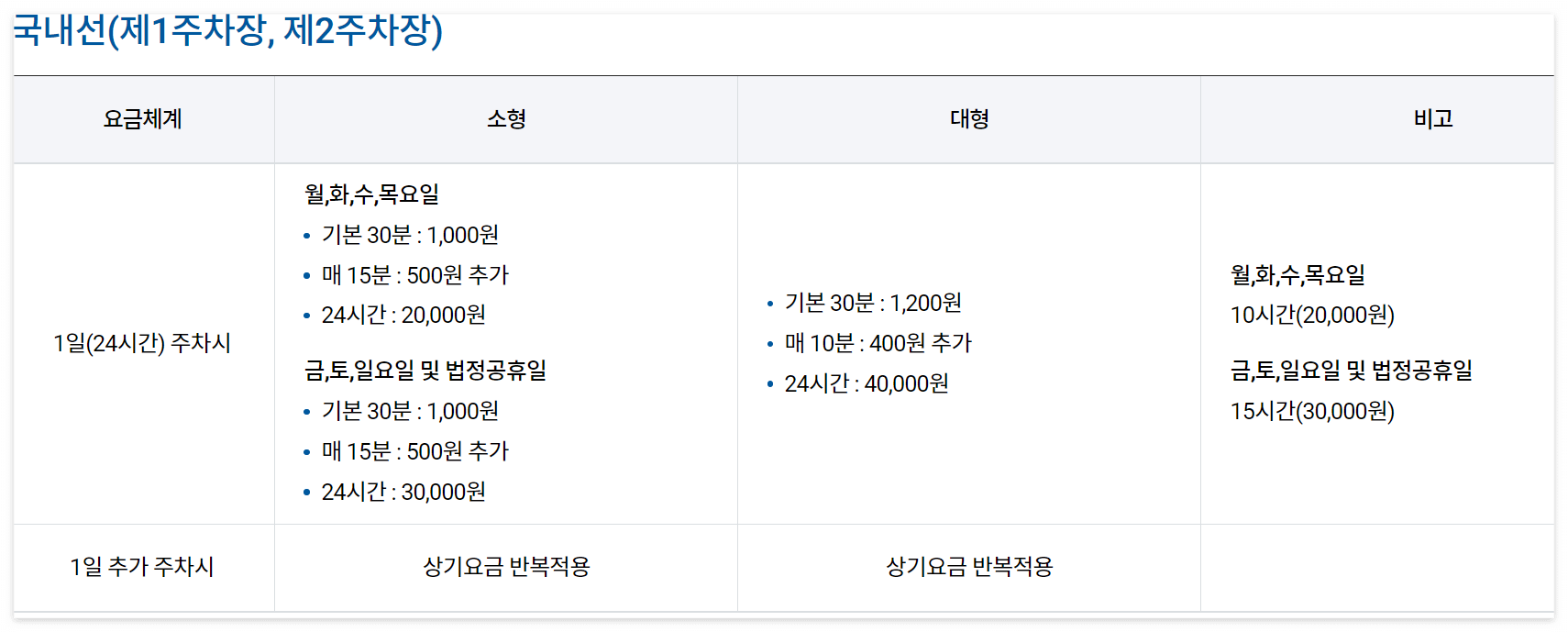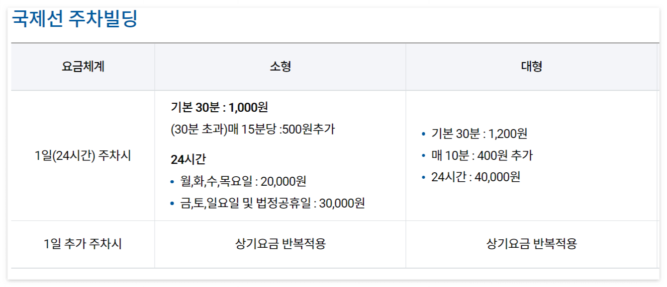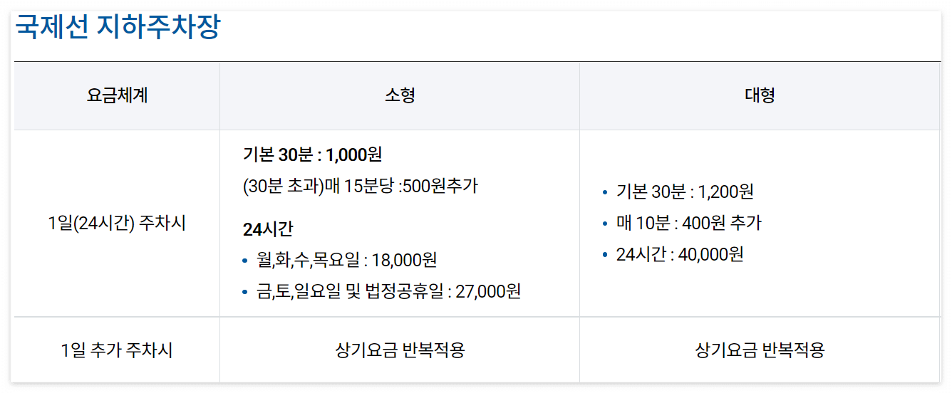 국제선 지하주차장의 요금이 가장 저렴하니 참고하세요!