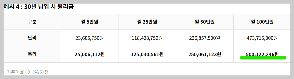 월납 기준 5만원~ 100만원까지 (1 만원 단위)