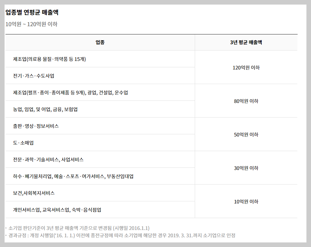 • 소상공인 요건(상시종업원 수) : 10명 미만(광업•제조업•건설업•운수업)/ 5명 미만(그 밖의 업종)