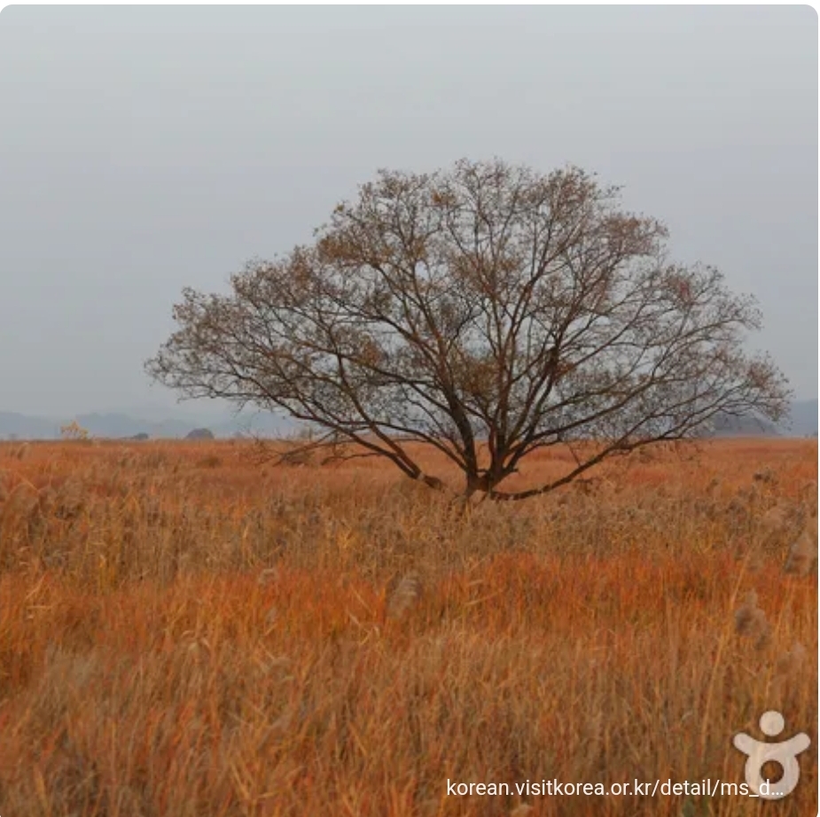억새밭 사이에 홀로 자리를 지키고 있는 나무가 이곳의 운치를 더해줍니다.