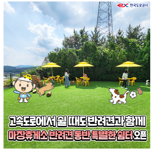 고속도로를 이용하실 때, 사랑스러운 반려견이 답답할까 걱정되지 않으신가요? 휴게소에서라도 즐겁게 뛰놀면 좋을 것 같은데요, 한국도로공사 블로그에 반려동물 휴게소 핫플이 소개되어 있