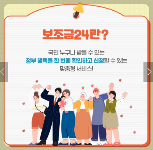 보조금 24는 정부24에 있는 서비스 중 하나로, 국민 누구나 받을 수 있는 정부 혜택을 한 번에 확인하고 신청할 수 있는 맞춤형 서비스입니다.