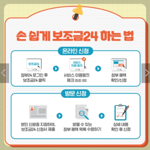 - 본인 신분증 지참하여, 보조금24 신청서 제출