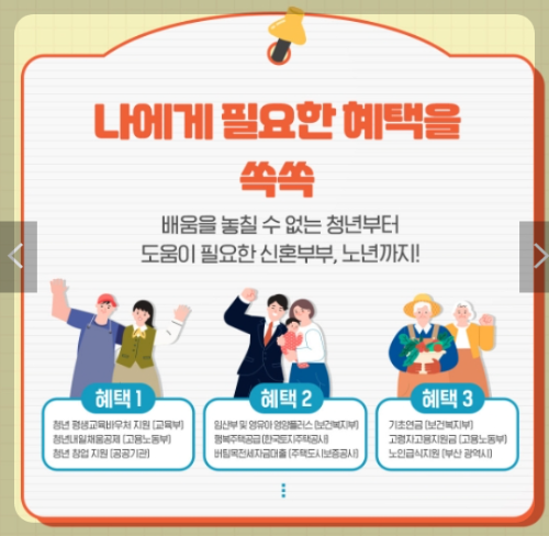 배움을 농칠 수 없는 청년부터 도움이 필요한 신혼부부, 노년까지! 자신에게 필요한 혜택을 보조금 24에서 한눈에 알아볼 수 있어요.