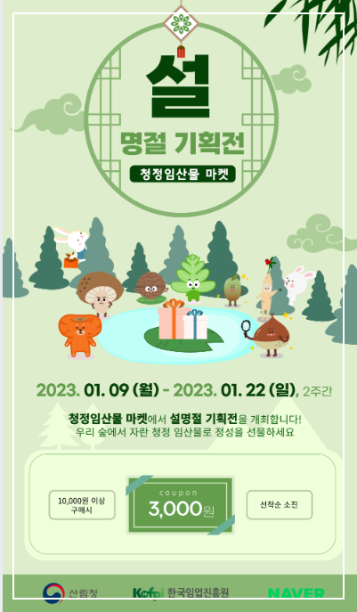 우리 숲에서 자란 고품질의 청정임산물을 저렴한 가격에 구매하고 건강을 나누는 따뜻한 설 명절이 되세요!