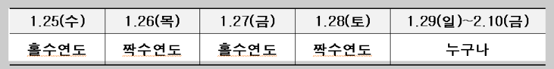 ※ 접수기간 첫 4일간(1.25~1.28)은 출생연도 끝자리에 따른 ‘홀짝제’ 운영