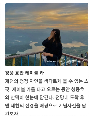 약 2천 년간 자리를 지켜 온 제천의 대표 명소입니다. 호수 주변으로 영호정과 경호루, 소나무 숲이 자리하고, 산책길이 잘 조성돼 있어 호수 뷰를 즐기며 걸을 수 있어요. 밤에는 데크길을 따라 조명이 켜져 야경 명소로도 손색없답니다.