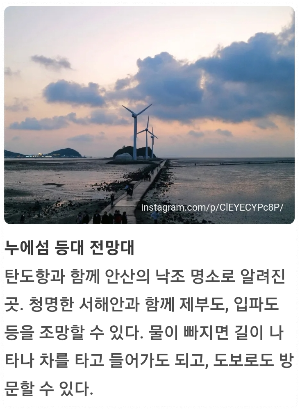서해안 일대는 일몰 명소로 유명한 만큼, 저녁 시간대에 맞춰 방문하면 낙조까지 감상할 수 있습니다.