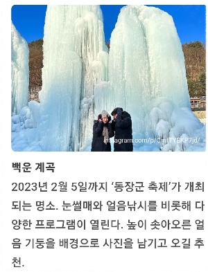 | 홍천강 꽁꽁축제 정보[인삼송어를 잡아라!] (0) | 2023.01.15 |