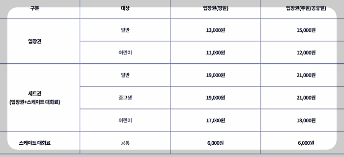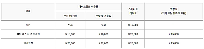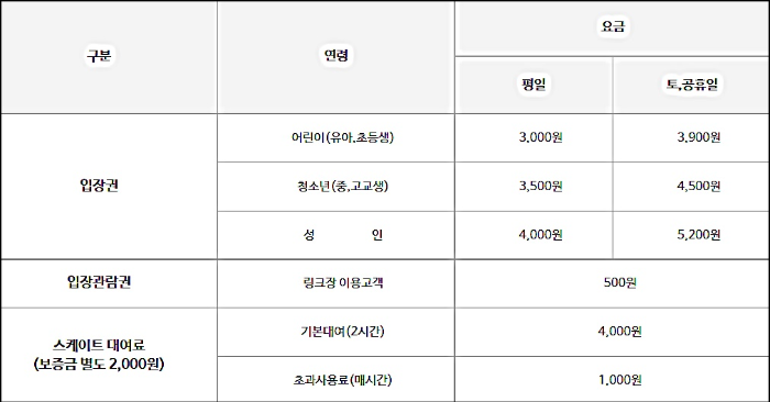 ✅️ 이용요금(2시간 입장료 + 스케이트 대여료)