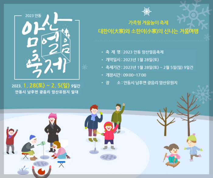 안동암산얼음축제는 천혜의 자연경관과 최고의 천연 빙질을 자랑하는 안동 암산에서 벌어지는 축제입니다.