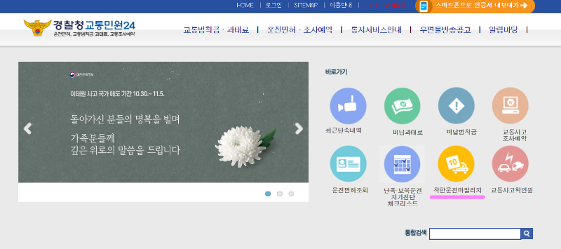 1. 경찰청교통민원24 홈페이지에 접속 후 운전면허 벌점 조회