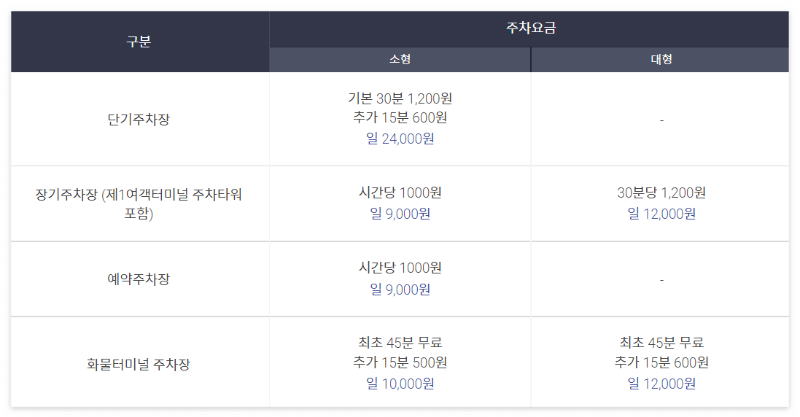 인천공항 주차 요금은 다음과 같습니다