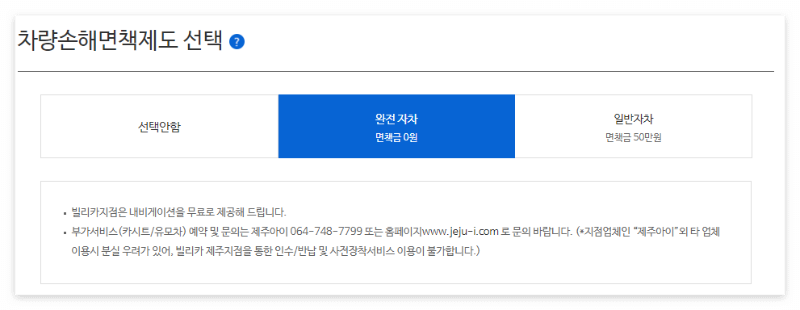 대여일을 설정하시고, 예약하기를 누르시면 차량선택과 차량손해면제제도를 선택하라고 나와요.