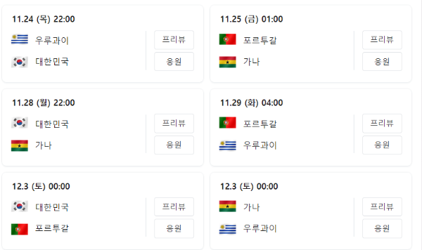 대한민국은 24일 에듀케이션 시티 스타디움에서 우루과이와 첫 경기를 치릅니다.