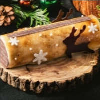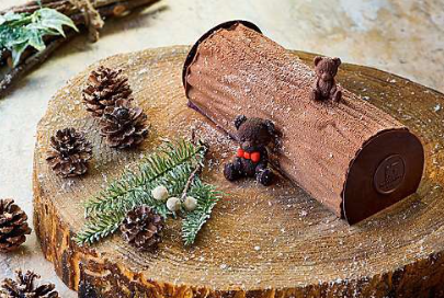 건포도를 넣은 브리오슈 반죽을 왕관 모양의 특유의 틀에 넣어 구워낸 후 크리스마스의 대표 케이크입니다. - 다크 초콜릿 로그 케이크 80,000원