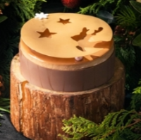 통나무에 기대 쉬고있는 곰돌이를 형상화하여 JW 메리어트 호텔 서울만의 스타일로 재해석했습니다. 블랙베리 초코 무스 안에 얼그레이와 체리 젤리를 곁들였으며, 화이트 크런치와 초코 스펀지가 담겨 한 조각으로 풍성한 맛을 즐기실 수 있습니다. - 에버그린 크리스마스 : 80,000원