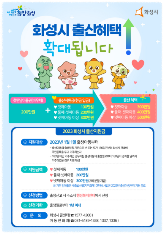 요즘 아이 낳아서 키우기 너무 힘드시죠~다행히도 화성시에서는 2023년 출산지원금을 확대합니다.