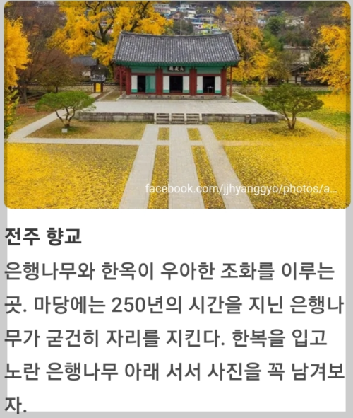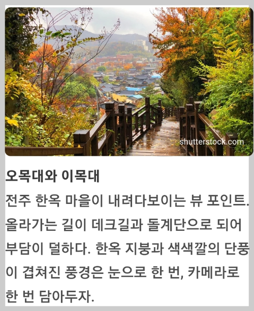 전주의 자랑인 한옥과 가을의 상징인 단풍이 어우려져 한국적인 아름다움이 넘치는 곳입니다.