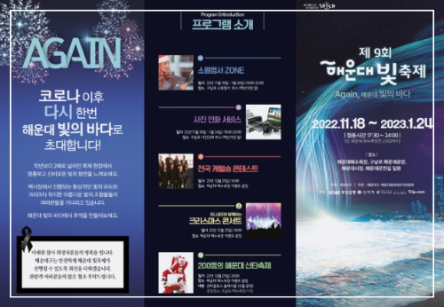 - 행사장소 : 해운대해수욕장, 해운대광장(구남로), 해운대 시장, 온천길 일원