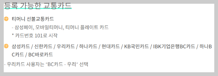 - 고속버스, 시외버스, 택시, 철도(KTX·SRT 등), 하이패스, 주차요금, 공유 이동수단(자전거, 킥보드 등) 이용요금 및 2인 이상 다인승 결제 건 전액에 대해서는 마일리지가 지급되지 않습니다.